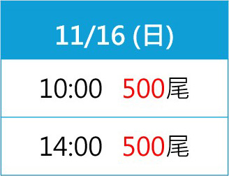 | 11:00 / 500尾 | 11:00 / 500尾 |