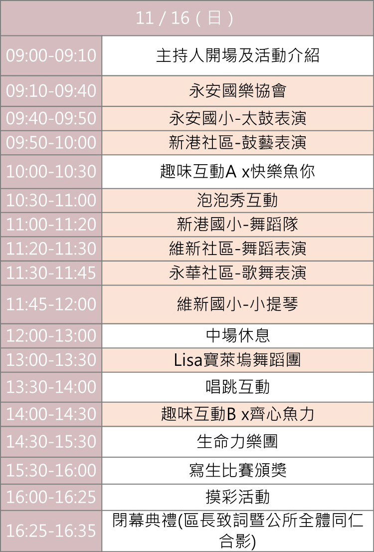 | 11 / 15(六) | 11 / 16(日) |